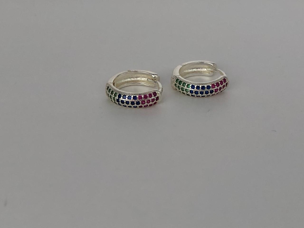 BRINCO ARGOLA CRAVEJADA COLORIDA PRATA MEDIO