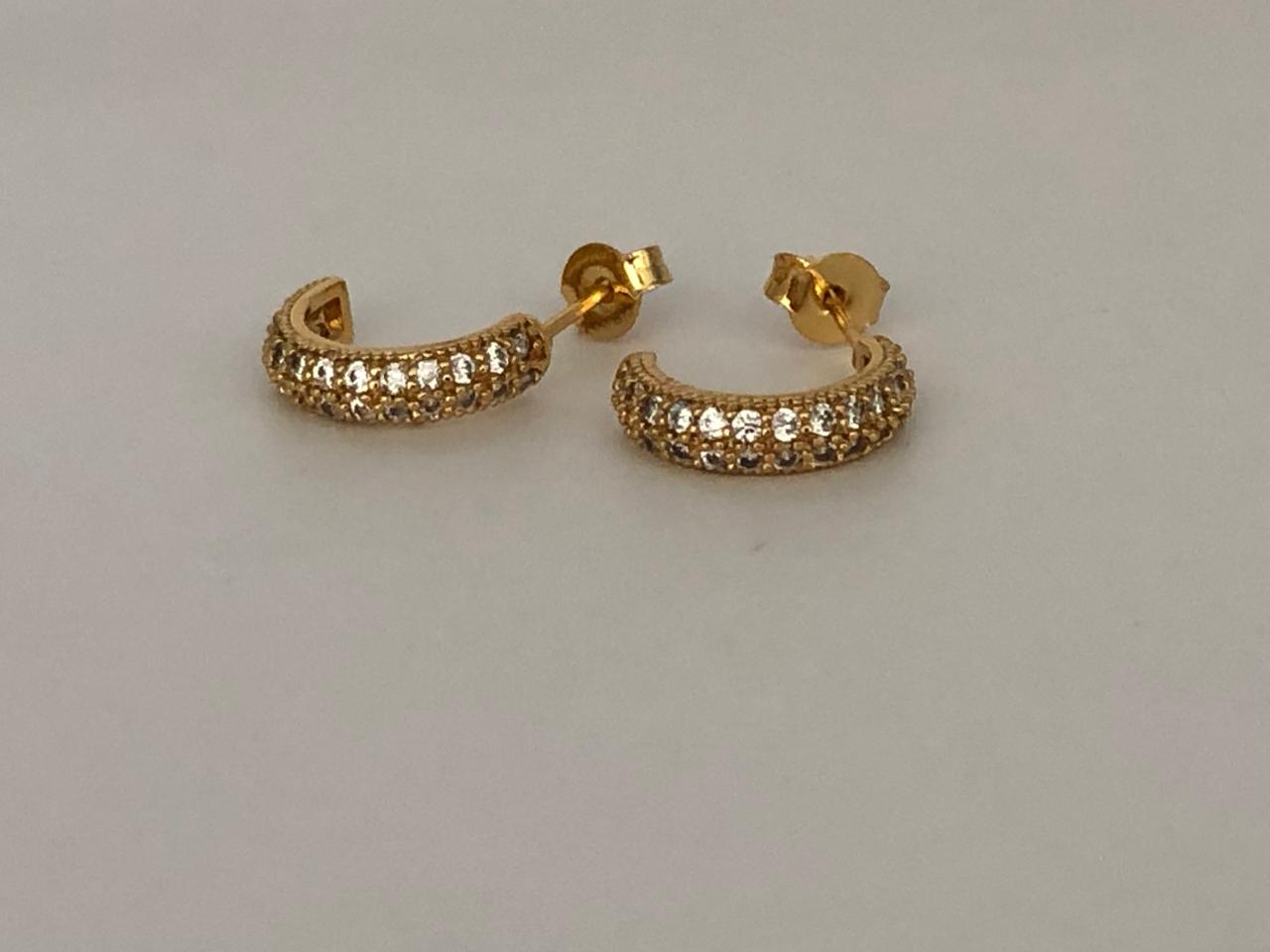 BRINCO ARGOLA DOURADO COM DETALHES EM PEDRAS, TRAZENDO UM BRILHO MARCANTE E UM VISUAL SOFISTICADO.