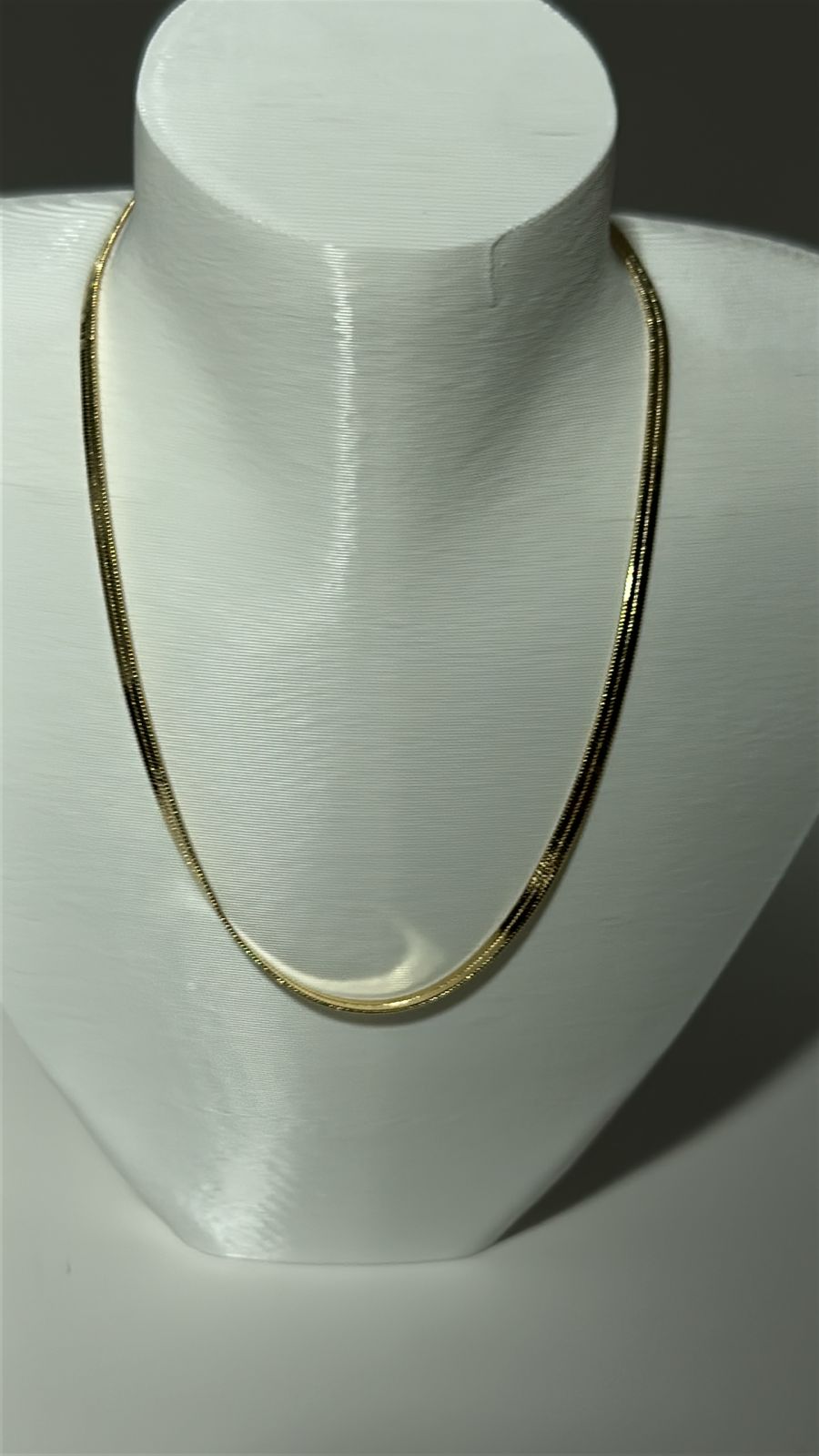 GARGANTILHA EM MALHA FITA LISA, COM DESIGN MODERNO E MINIMALISTA QUE TRAZ ELEGÂNCIA E BRILHO SUTIL AO VISUAL.