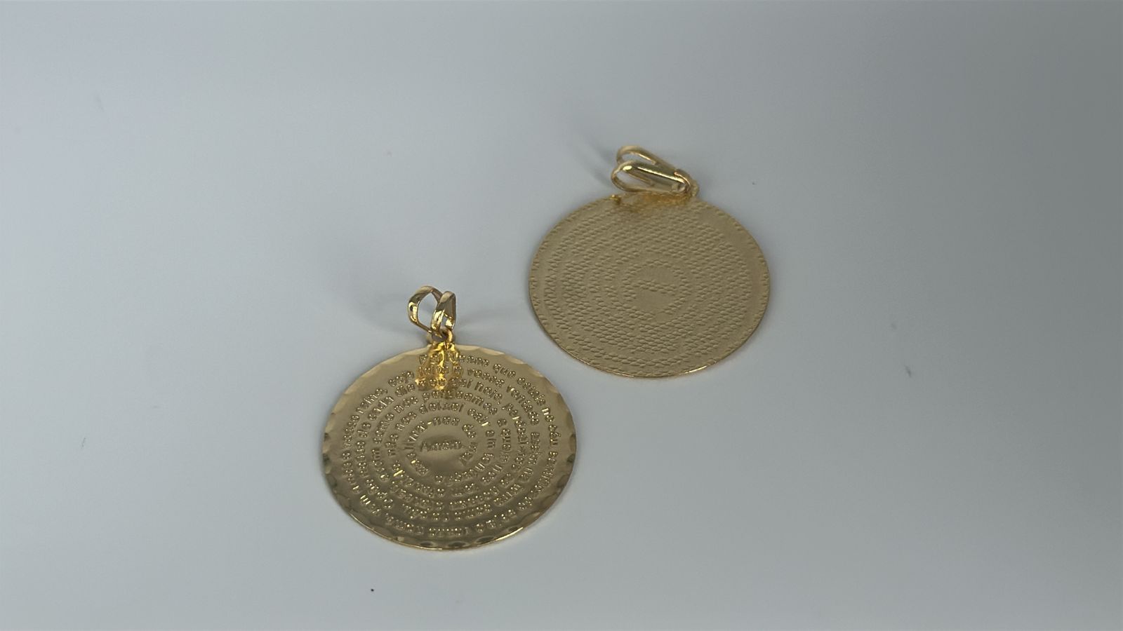 PINGENTE EM FORMATO DE MEDALHA GRANDE COM A ORAÇÃO DO PAI NOSSO, TRAZENDO UM FORTE SIGNIFICADO DE FÉ, PROTEÇÃO E PRESENÇA MARCANTE.