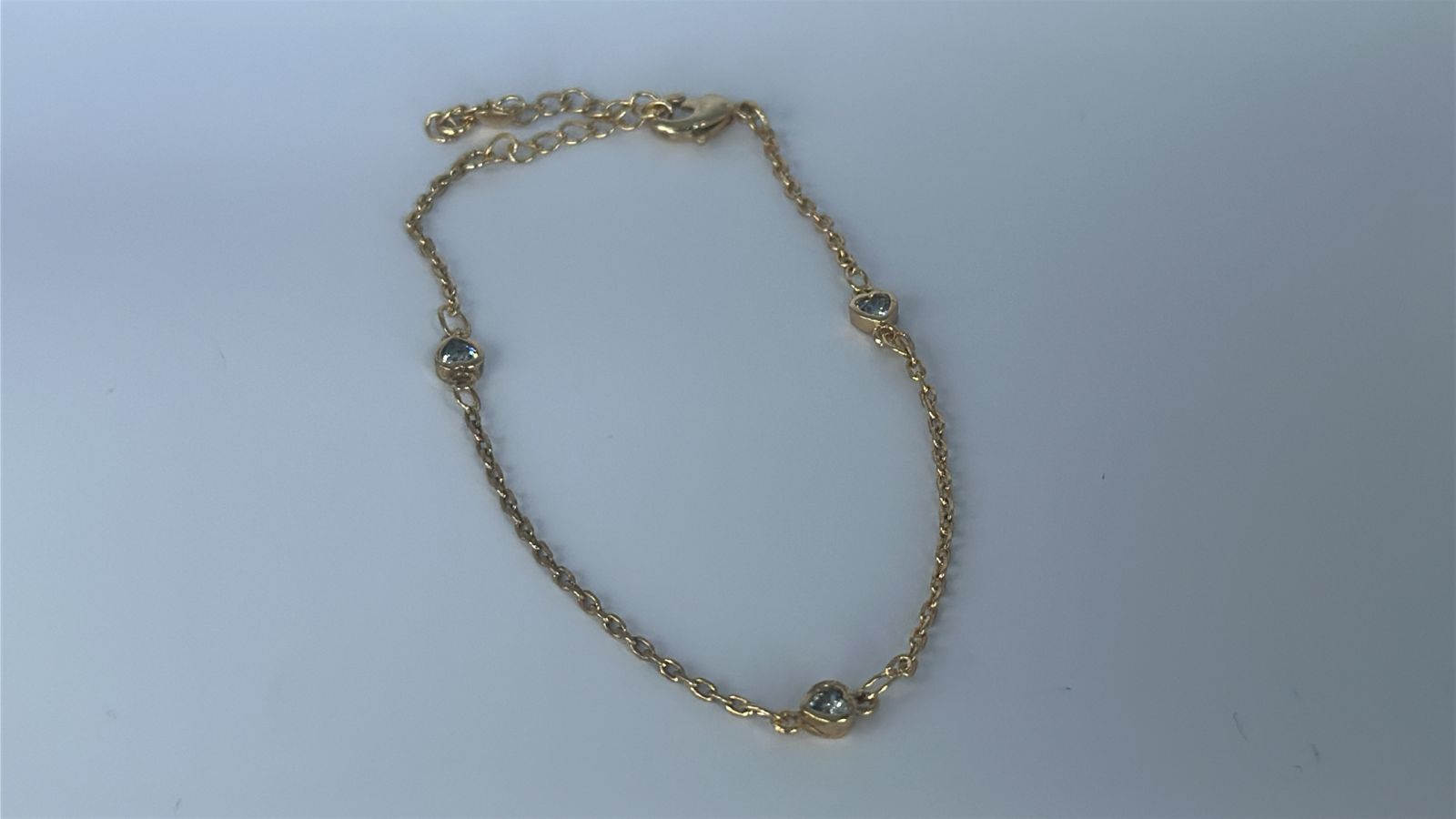 PULSEIRA DELICADA COM TRÊS PONTOS EM FORMATO DE CORAÇÃO, TRAZENDO UM DESIGN ROMÂNTICO E ELEGANTE PARA O DIA A DIA.
