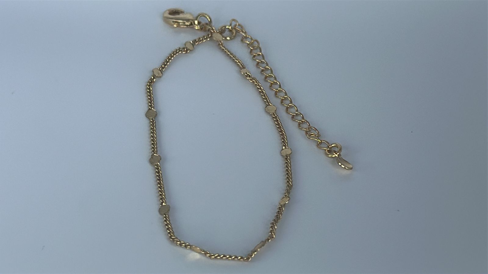 PULSEIRA DELICADA COM PEQUENOS DETALHES AO LONGO DA CORRENTE, TRAZENDO UM ESTILO MINIMALISTA E ELEGANTE PARA O DIA A DIA.